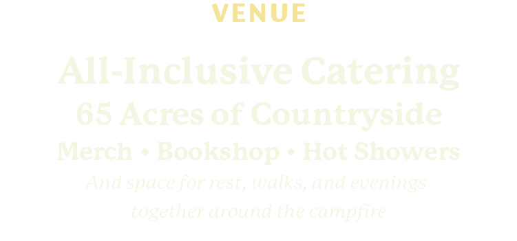 All meals from Friday evening to Monday morning are included with full Weekend Event Passes. There aren’t any shops nearby, and we don’t have facilities to refrigerate or heat food. Please bring everything you need for the day—packed meals, snacks, and drinks (a filled flask is handy if you’d like something hot). Don’t forget a water bottle and any cutlery you’ll need!